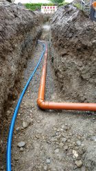 Wir übernehmen auch Niveauregulierungen, zum Beispiel für die Anlage Ihres Gartens oder als Vorbereitung für einen größeren Parkplatz. Wir erledigen auch Grabungen für den Kanalbau oder das Verlegen von Leitungen oder Kabeln. Selbstverständlich entsorgen wir die anfallenden Bodenmassen fachgerecht, wobei wir genau darauf achten, sorgfältig zu trennen zwischen wertvollem Mutterboden und Steinen.